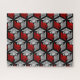 Puzzle in a classic Japanese kimono pattern of stylised cranes, arranged in a pattern of hexagons, in deep red, light and medium grey / grey, on a black background