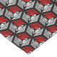 Table runner in a classic Japanese kimono pattern of stylised cranes, arranged in a pattern of hexagons, in deep red, light and medium grey / grey, on a black background