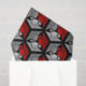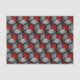Tissue paper in a classic Japanese kimono pattern of stylised cranes, arranged in a pattern of of hexagons, in deep red, light and medium grey / grey, on a black background