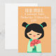 A party invitations suitable for a Japanese themed made in Japan sushi party. Cute traditional kokeshi dolls art style illustration is colourful and the background colour and text can be changed to suit your taste.