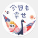 It is a happy sticker that uses the motif of a paper crane, which is a traditional Japanese icon. The crane's wings are painted with a pattern of washi (Japanese paper) that brightens your mood, and it's colorful and lively. The message says, "I'm happy today too." Please let me sneak in where you always see me.