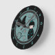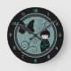 Japanese Doll Black and Blue Polka Dot Round Clock