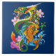 Japanese Dragon Koi Lotus Mythical Asian Blue Tile