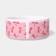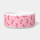 Pet bowl in a traditional Japanese dragonfly, or tombo pattern, also called katsumushi (“winning bugs”) by samurai warriors, who used dragonfly motifs to invoke victory - Deep coral pink dragonflies on a pastel coral pink background