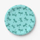 Japanese Dragonfly Pattern, Turquoise and Aqua Paper Plate