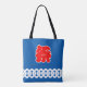 This handy happi-coat-inspired tote bag is decorated with a classic Japanese chain pattern and the kanji for "festival!" Perfect for carrying your stuff around at Obon! Open the full editor to add text or change the blue bag colour. Be sure to change both sides.