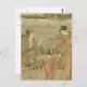 Vintage Japanese Woodblock Print Showing Fisherman - This is a beautiful vintage print from Japan, originally published in a book called "Masterpieces selected from the Ukiyoyé school-Vol4" housed in the Mellon Posner Centre Library. ("Tajima, Shiichi, 1869- ed.") This fishing scene is a lovely Japanese Woodblock Print, showing a person on the left catching a fish with a big swish of the fishing pole, the fish is brought up from the water. On many of our gifts, there are two other figures in the foreground. The Japanese figures are dressed in traditional old-fashioned Japanese robes, and they're sitting on the dock as boats go back and forth in the background.