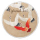 Japanese style group of cranes in flight, in creamy white and fiery reds and orange, over old simulated bamboo paper. Classic Japan art turned modern, timeless symbols of longevity, health, good fortune and fidelity.