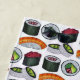 Great for summertime fun! Beach towel features an original marker illustration of a row of delicious Japanese sushi maki rolls and salmon nigiri sushi.