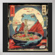 Japanese Frog Eating Ramen for funny food lovers Poster