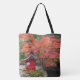 Your choice of stylish tote bag or crossbody bag with an all-over print that features a photo image of colourful, autumn leaves and a miniature, red Shinto shrine in a Japanese garden. A lovely, botanical design! Select your bag style and size. Photo: Point Defiance Park Japanese Garden