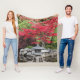 Japanese Garden Lantern and Red Maple Leaves Fleece Blanket