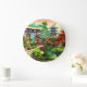 Japanese Garden Pagoda Sakura And Waterfall Large Clock