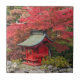 Ceramic tile that features the photo image of a red garden shrine and red, autumn maple leaves in a Japanese garden. Select your tile size. Makes a pretty kitchen trivet! Photo: Point Defiance Park Japanese Garden