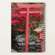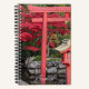 Slender style, spiral bound notebook that features a front and back cover with a colourful, photo image of traditional Japanese garden structures, including a red Torii gate along with fiery, Red Japanese Maple leaves during the autumn season. Perfect for use as a journal or for keeping notes. Select your notebook style and wire colour. Photo: Point Defiance Park Japanese Garden