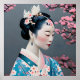 This AI-created downloadable art features a panting of a traditionally dressed Geisha standing next to a cherry blossom tree. She wears the traditional Geisha make up with red color around her eyes, and has cherry blossoms and other flowers as hair jewelry. Her turquoise Kimono is also has cherry blossoms on it. The picture is inspired by traditional Japanese art style but looks like modern oil painting technique. There is a modern Japanese art style called Nihonga, which is a fusion of traditional Japanese painting techniques with Western-style painting techniques. This style often uses oil paints and is known for its realism and attention to detail. However, Nihonga is not typically associated with Geisha paintings. So I think, my picture is unique. It took me a while to develop this in an AI art program. Take a closer look at the artwork´s details.
