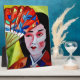 with original artwork design from watercolour painting by Sacha Grossel of Kyoto Japanese Geisha with colourful kimono and orange fan. This beautiful design is inspired by Asian and oriental art and uses bright colour in the style.