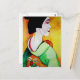 with original art design from watercolour painting by Sacha Grossel of Japanese Geisha with green kimono. This geisha is inspired by Asian, oriental, Japanese style and has a yellow background.