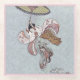 Sweet image on a pale blue background. Young Japanese girl floats through the air with her umbrella. Vintage image "Madchen-Spring" from Harunobu (1725-1770)