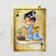 Japanese girl in kimono watering a bonsai tree. From the Japanese Themed Playing Cards Collection