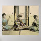 Image:97510 Japanese girls playing the flute, 'koto' and samisen, c.1880 (hand coloured albumen print on card). Japanese Photographer, (19th century). Private Collection, The Stapleton Collection. Art, Fine Art.
