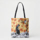 A beautiful black cat is sitting in the grass and keeping a watchful eye on the bird on the branch. But it looks like the bird is being saucy... A beautiful Japanese style watercolor design on a vibrant orange poppies background. Visually striking and unique, you won't find another tote bag quite like this one! The design on the back is the same, just reversed, so the branches come together on the side seam of the bag.