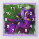 Wall clock with a rough squared image of a deep purple Japanese iris in bloom. Customisable ~ add text by clicking "Customise it!" ~ background colour may also be changed by choosing edit>background and then choosing a colour from the chart. © Little Wing Photography & Design