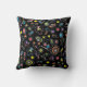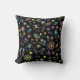 Japanese Kawaii Culture Doodles on Black Cushion