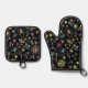 Japanese Kawaii Culture Doodles on Black Oven Mitt & Pot Holder Set