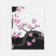 Japanese Kimono Black and White Pink Sakura Fleece Blanket