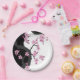 Japanese Kimono Black and White Pink Sakura Paper Plate