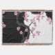 Japanese Kimono Black and White Pink Sakura Throw Blanket