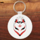 Stylised red, black, and white fox mask inspired by traditional Japanese kitsune mask.