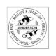An elegant address stamp for a couple with a simple black and white vector illustration of a pair of Japanese koi fish circling each other. The family name is written across the illustration while the first names and the address are printed around it. Please note, you may need to adjust the information you enter by adding or deleting some characters or spaces, to make the name and the address properly aligned.