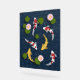 Beautiful minimalistic vector illustration of colourful Japanese koi fish swimming among the water lilies in a pond. Koi is a brightly coloured ornamental variety carp domesticated in Japan.