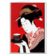 Discover the serene beauty of Japanese tradition with this elegant art design featuring a woman gracefully serving tea. This artwork captures the essence of a traditional Japanese tea ceremony, showcasing a lady in a beautifully detailed kimono against a vibrant red background. This design is perfect for adding a touch of cultural sophistication to your home, as a thoughtful gift for tea lovers and Japanese culture enthusiasts, or for themed events.