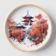 Traditional illustration of a Japanese landscape with pagoda shore and autumn, truly adaptable to any type of print.