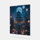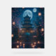 Immerse yourself in the serenity of a moonlit Japanese temple surrounded by blooming cherry blossoms, glowing lanterns, and magical reflections. This enchanting artwork captures a peaceful evening under the full moon, as a lone figure walks up temple steps during a lantern festival. Perfect for lovers of Japanese culture, tranquil scenes, or fantasy-inspired art.
