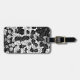 Customisable luggage tag in a vintage Japanese kimono print - an all over pattern of stylised leaves, alternating positive and negative space, in classic black and white