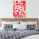Wrapped canvas in a vintage Japanese kimono print - an all over pattern of stylised leaves, alternating positive and negative space, in deep Chinese red and white