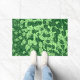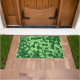 Doormat in a Japanese kimono print - an all over pattern of stylized leaves, alternating positive and negative space, in deep emerald green and light lime green