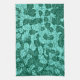 Japanese Leaf Print, Turquoise and Aqua Tea Towel