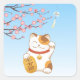 Japanese Lucky Calico Cat, Maneki Neko Square Sticker