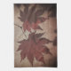 A faint script under fallen, autumn, japanese maple leaves. They come in four colour schemes.. Natural yet elegant.