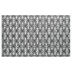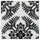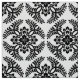 Fabric in a classic Japanese kimono pattern of stylised, four-way, medallions of leaves and flowers in classic black on a deep white background