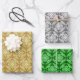 Japanese Medallion Pattern, Gold, Grey, Green Wrapping Paper Sheet