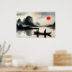 Japanese Men Sailing Boat Evening River Landscape Poster