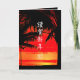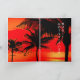 This design features palm trees and sunrise sky on tropical beach background Japanese New Year Card.