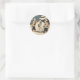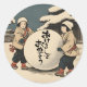 This charming classic round sticker features a nostalgic vintage woodcut–style illustration of Japanese children joyfully rolling a large snowball in a snowy winter scene. Created by Alma Wad in collaboration with Canva AI, the design is beautifully enhanced with elegant Japanese calligraphy and New Year wishes placed at the center. A perfect decorative accent for planners, gift wrapping, journals, holiday cards, and winter-themed crafts, this sticker blends tradition, warmth, and festive joy in one delightful design.