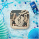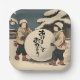 This charming square paper plate features a vintage woodcut-style illustration of Japanese children rolling a large snowball, designed by Alma Wad in collaboration with Canva AI. The artwork is complemented by Japanese calligraphy, with New Year wishes elegantly placed in the center. The nostalgic, wintery scene exudes a joyful, vintage charm, making it a perfect addition to New Year's celebrations. With its unique design, this paper plate adds a touch of elegance and cultural flair to any table setting.